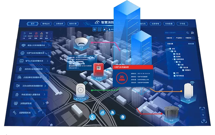okpay钱包科技智慧消防解决方案,运用TurMass™ /LoRaWAN/Cat.1/NB-IoT物联网通讯技术,通过独立式感烟探测报警器、声光报警器、手动报警器、可燃气体探测报警器、电气火灾探测报警器、无线远程压力采集终端、无线液位远程采集终端、无线智能消防栓监测终端等为媒介,实现对于消防管理重点场所进行实施预防和管理的新型物联网解决方案。